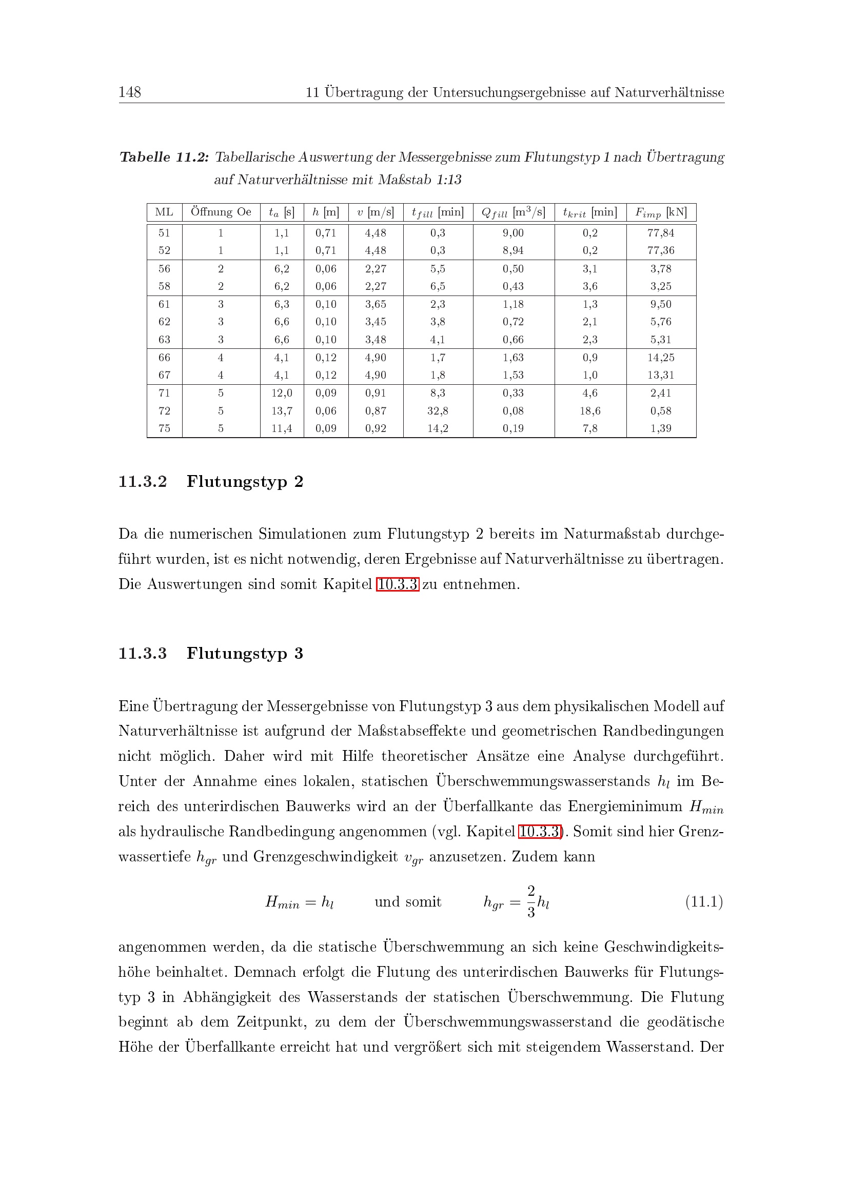 Übertragung der Untersuchungsergebnisse auf Naturverhältnisse