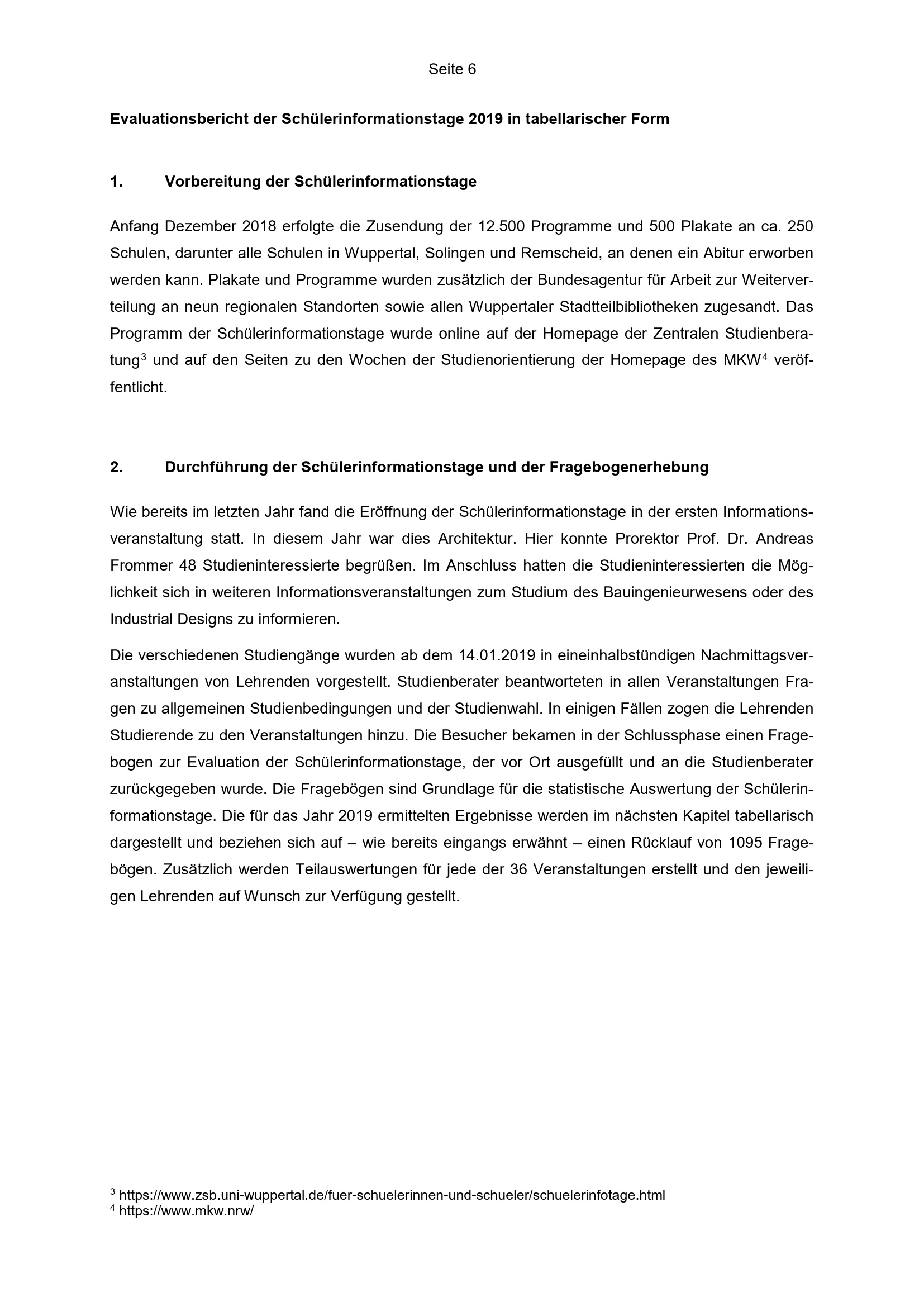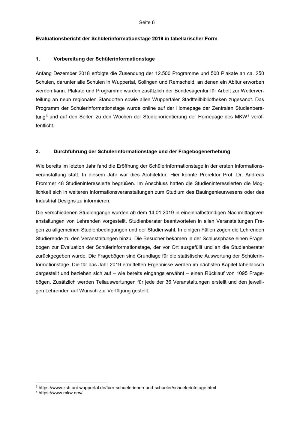 Evaluationsbericht der Schülerinformationstage 2019 / Herausgeber: Zentrale Studienberatung der Bergischen Universität Wuppertal ; Evaluationsbericht: Dipl.-Psych. Brigitte Diefenbach und Sonja Haefs