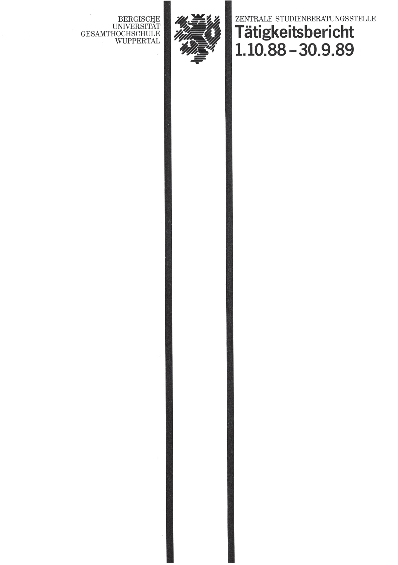 1988,1989 (1990) Tätigkeitsbericht der ZSB / Zentrale Studienberatungsstelle der Bergischen Universität Wuppertal. Gerhart Rott. 1988/1989 / 01.10.1988 - 30.09.1989
