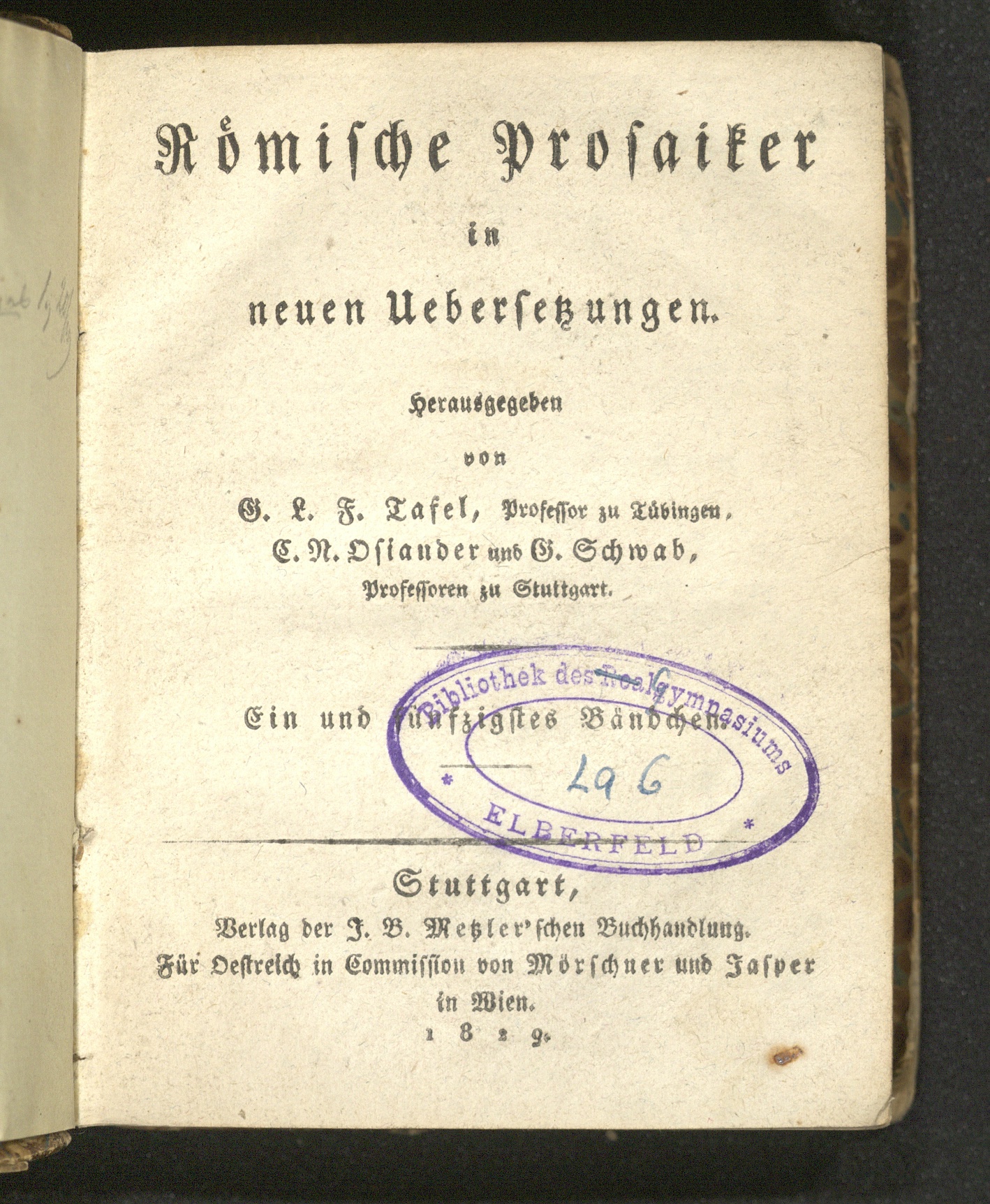 1 (1829) Agricola's Leben und Germanien / Cajus Cornelius Tacitus. Übers. von H. Gutmann
