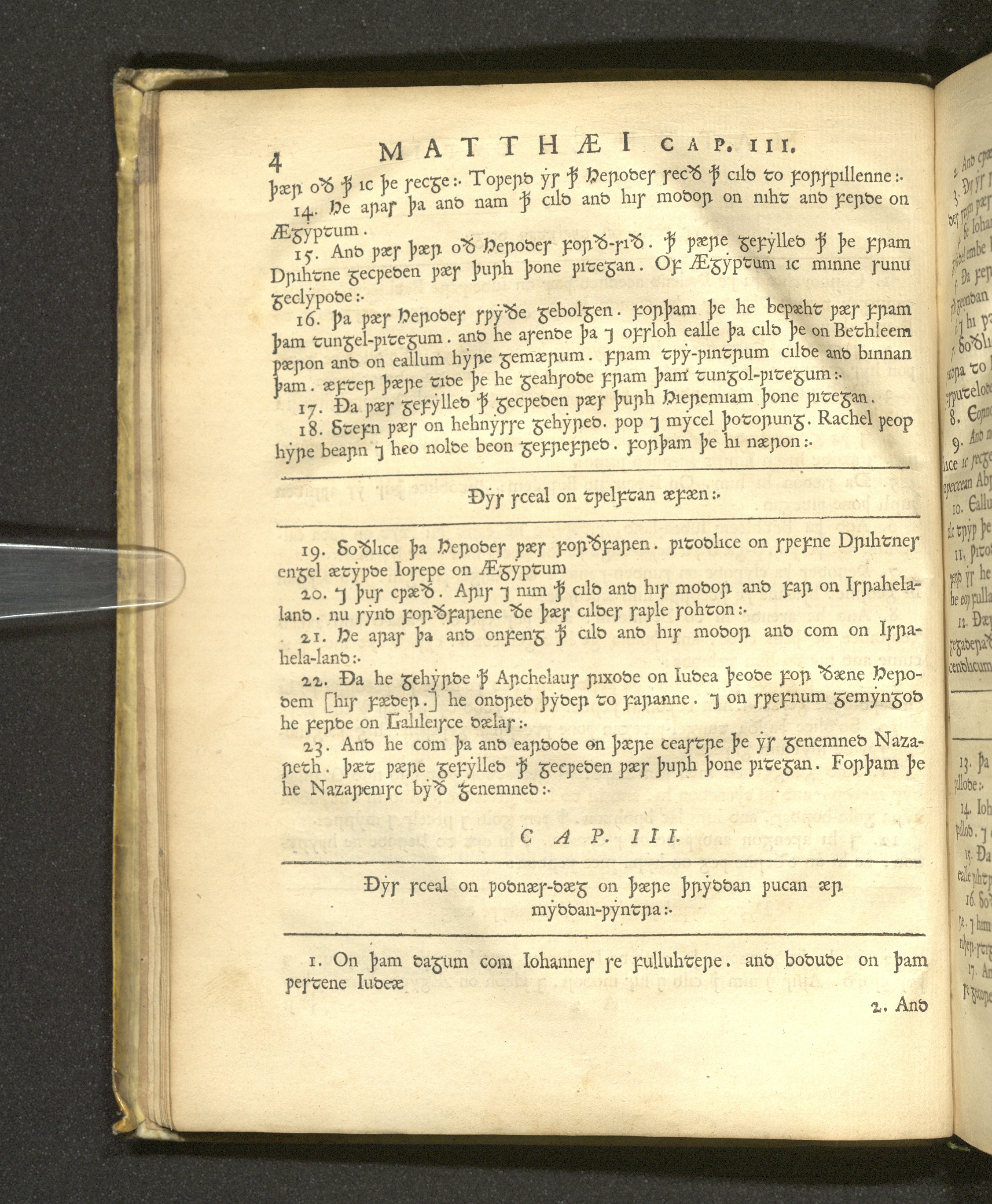 Quatuor D. N. Jesu Christi Euangeliorum Versiones perantiquæ duæ, Gothica scil. et Anglo-Saxonica / Quarum illam ex celeberrimo Codice Argenteo nunc primùm depromsit Franciscus Junius F. F. Hanc autem ex Codicibus Mss. collatis emendatiùs recudi curavit Thomas Mareschallus, Anglus ... Accessit & Glossarium Gothicum cui præmittitur Alphabetum Gothicum, Runicum, &c. operâ ejusdem Francisci Junii