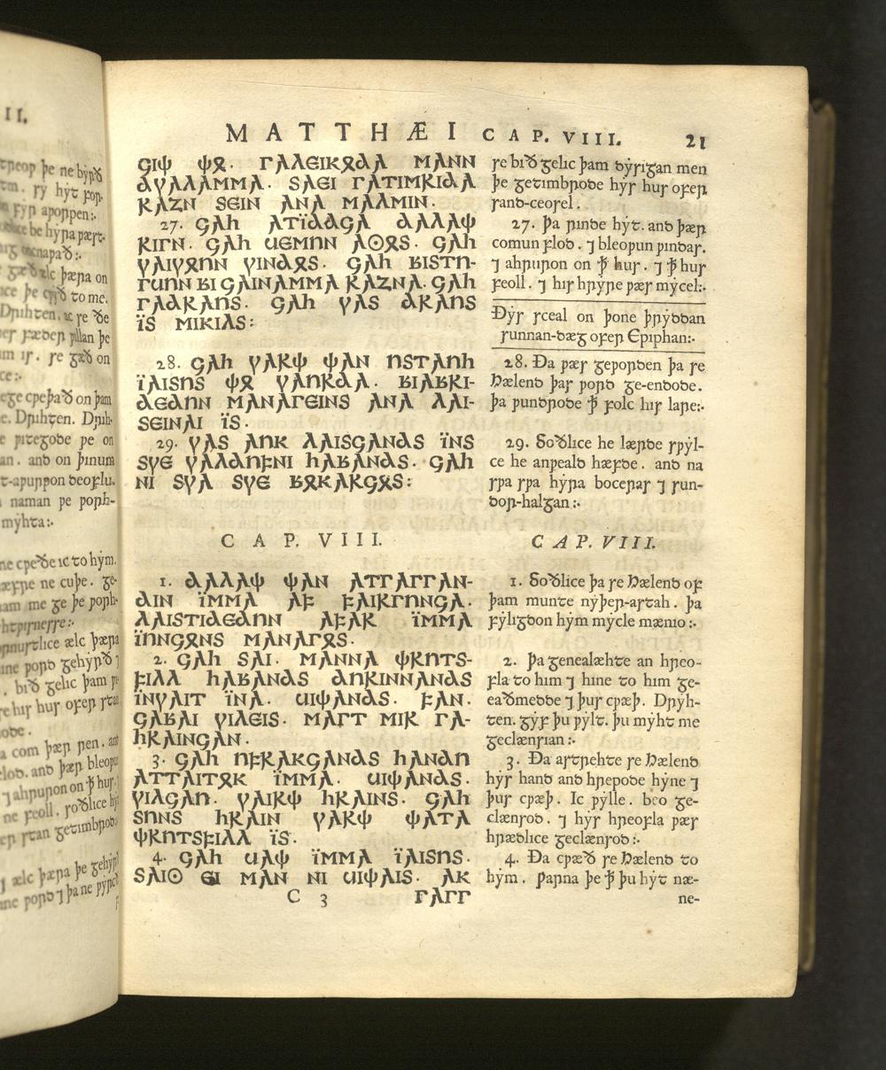 Quatuor D. N. Jesu Christi Euangeliorum Versiones perantiquæ duæ, Gothica scil. et Anglo-Saxonica / Quarum illam ex celeberrimo Codice Argenteo nunc primùm depromsit Franciscus Junius F. F. Hanc autem ex Codicibus Mss. collatis emendatiùs recudi curavit Thomas Mareschallus, Anglus ... Accessit & Glossarium Gothicum cui præmittitur Alphabetum Gothicum, Runicum, &c. operâ ejusdem Francisci Junii
