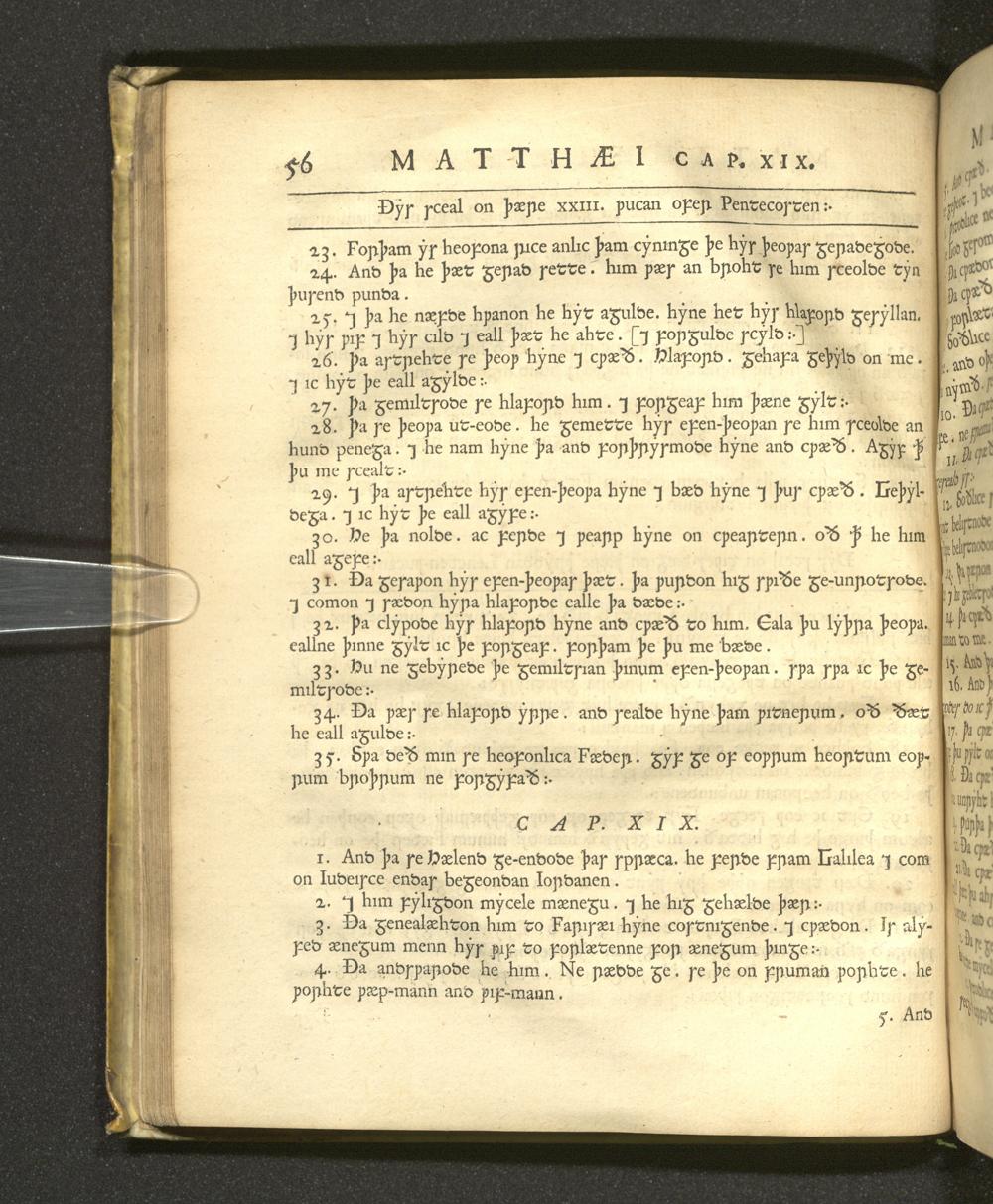 Quatuor D. N. Jesu Christi Euangeliorum Versiones perantiquæ duæ, Gothica scil. et Anglo-Saxonica / Quarum illam ex celeberrimo Codice Argenteo nunc primùm depromsit Franciscus Junius F. F. Hanc autem ex Codicibus Mss. collatis emendatiùs recudi curavit Thomas Mareschallus, Anglus ... Accessit & Glossarium Gothicum cui præmittitur Alphabetum Gothicum, Runicum, &c. operâ ejusdem Francisci Junii