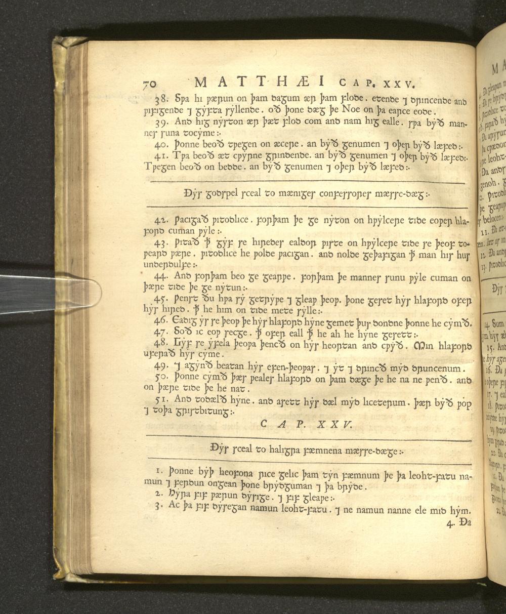 Quatuor D. N. Jesu Christi Euangeliorum Versiones perantiquæ duæ, Gothica scil. et Anglo-Saxonica / Quarum illam ex celeberrimo Codice Argenteo nunc primùm depromsit Franciscus Junius F. F. Hanc autem ex Codicibus Mss. collatis emendatiùs recudi curavit Thomas Mareschallus, Anglus ... Accessit & Glossarium Gothicum cui præmittitur Alphabetum Gothicum, Runicum, &c. operâ ejusdem Francisci Junii