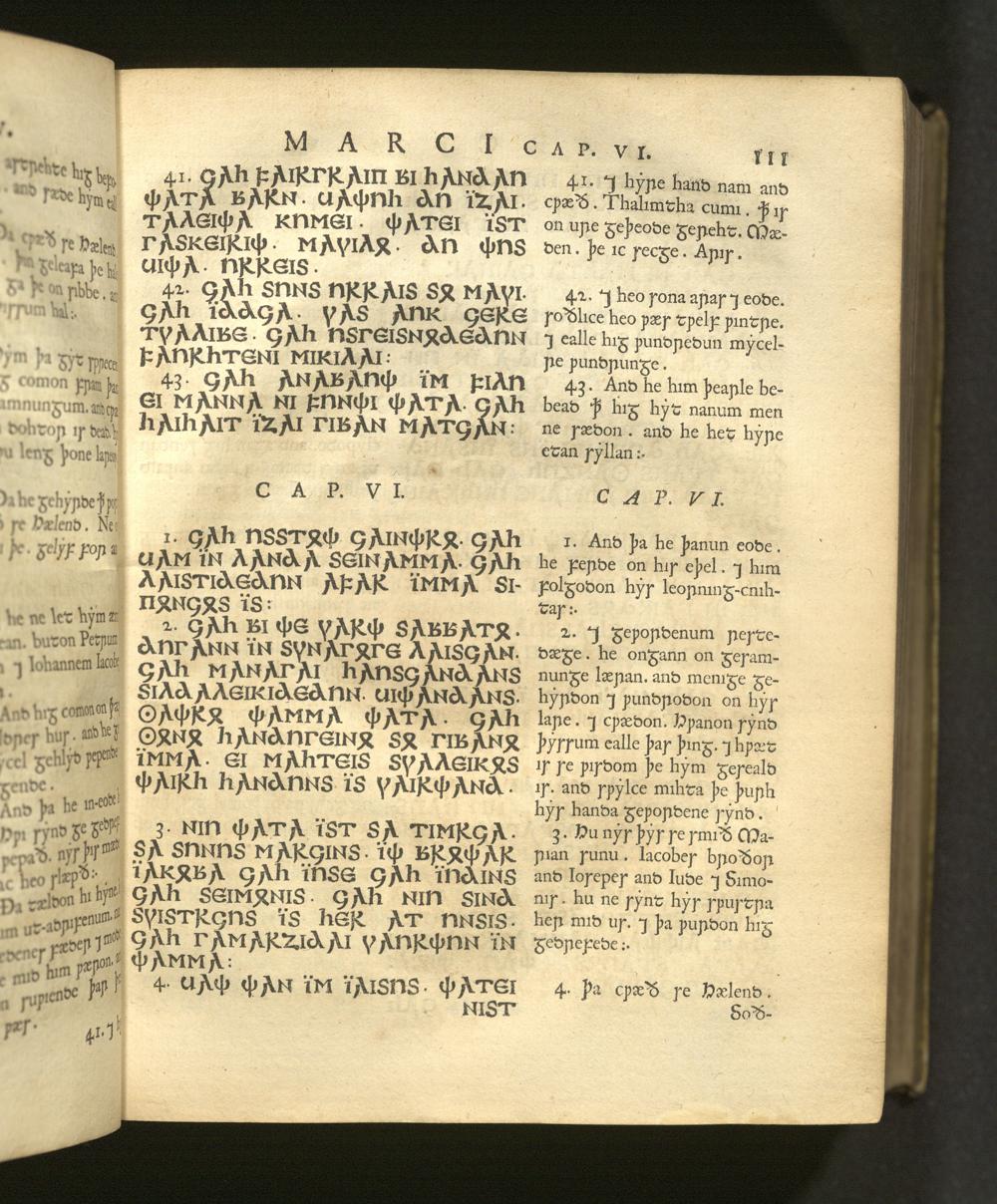 Quatuor D. N. Jesu Christi Euangeliorum Versiones perantiquæ duæ, Gothica scil. et Anglo-Saxonica / Quarum illam ex celeberrimo Codice Argenteo nunc primùm depromsit Franciscus Junius F. F. Hanc autem ex Codicibus Mss. collatis emendatiùs recudi curavit Thomas Mareschallus, Anglus ... Accessit & Glossarium Gothicum cui præmittitur Alphabetum Gothicum, Runicum, &c. operâ ejusdem Francisci Junii