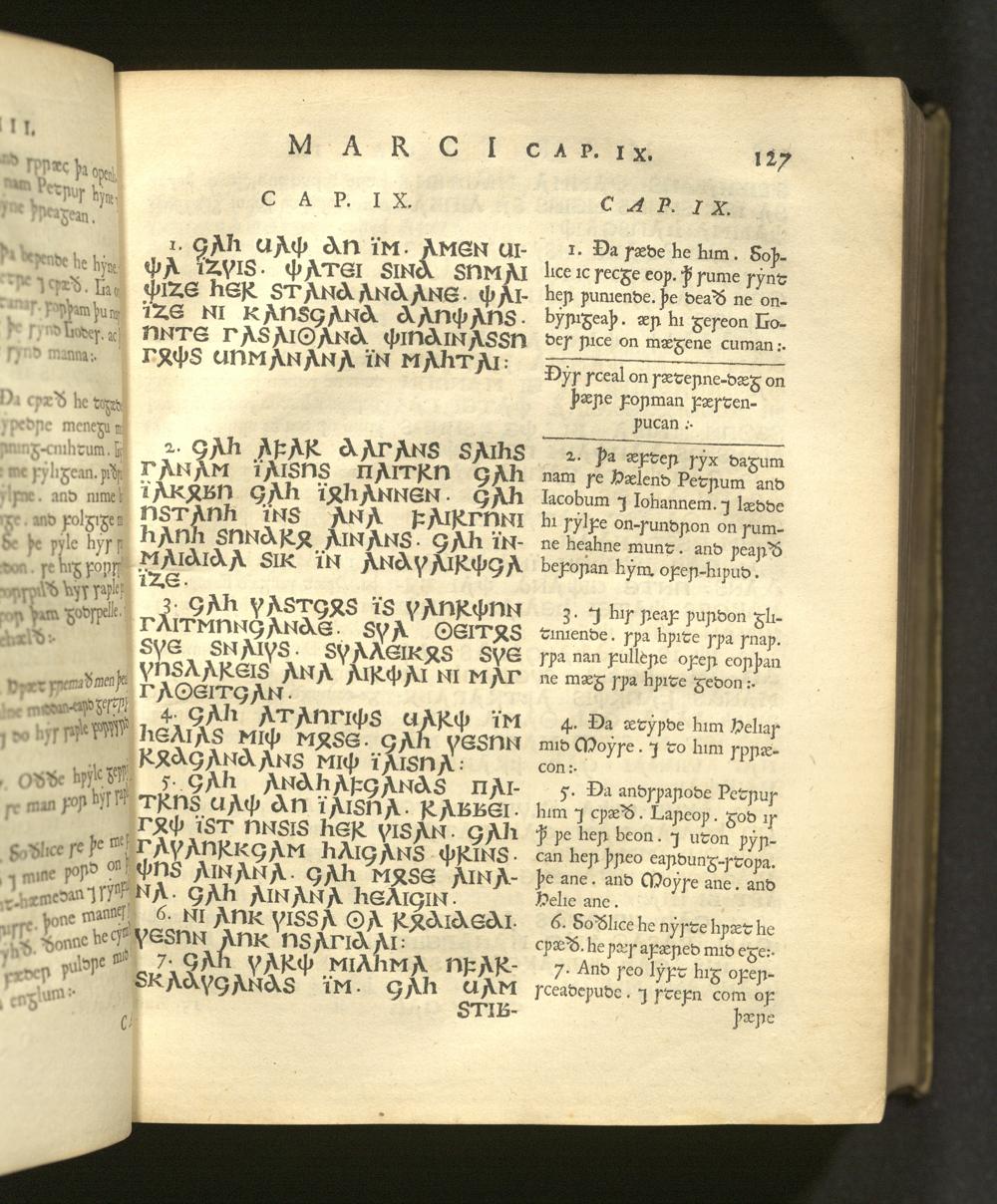Quatuor D. N. Jesu Christi Euangeliorum Versiones perantiquæ duæ, Gothica scil. et Anglo-Saxonica / Quarum illam ex celeberrimo Codice Argenteo nunc primùm depromsit Franciscus Junius F. F. Hanc autem ex Codicibus Mss. collatis emendatiùs recudi curavit Thomas Mareschallus, Anglus ... Accessit & Glossarium Gothicum cui præmittitur Alphabetum Gothicum, Runicum, &c. operâ ejusdem Francisci Junii