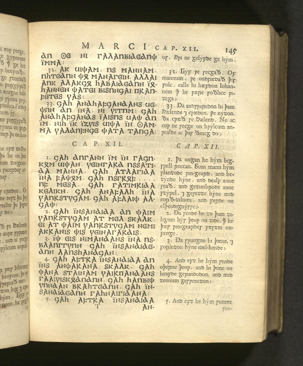 Quatuor D. N. Jesu Christi Euangeliorum Versiones perantiquæ duæ, Gothica scil. et Anglo-Saxonica / Quarum illam ex celeberrimo Codice Argenteo nunc primùm depromsit Franciscus Junius F. F. Hanc autem ex Codicibus Mss. collatis emendatiùs recudi curavit Thomas Mareschallus, Anglus ... Accessit & Glossarium Gothicum cui præmittitur Alphabetum Gothicum, Runicum, &c. operâ ejusdem Francisci Junii