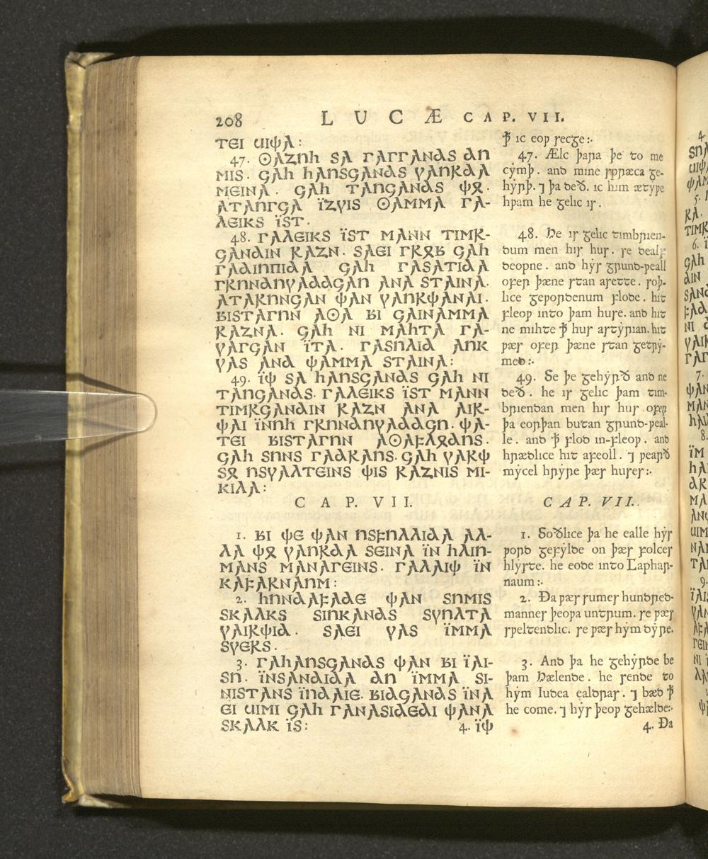 Quatuor D. N. Jesu Christi Euangeliorum Versiones perantiquæ duæ, Gothica scil. et Anglo-Saxonica / Quarum illam ex celeberrimo Codice Argenteo nunc primùm depromsit Franciscus Junius F. F. Hanc autem ex Codicibus Mss. collatis emendatiùs recudi curavit Thomas Mareschallus, Anglus ... Accessit & Glossarium Gothicum cui præmittitur Alphabetum Gothicum, Runicum, &c. operâ ejusdem Francisci Junii