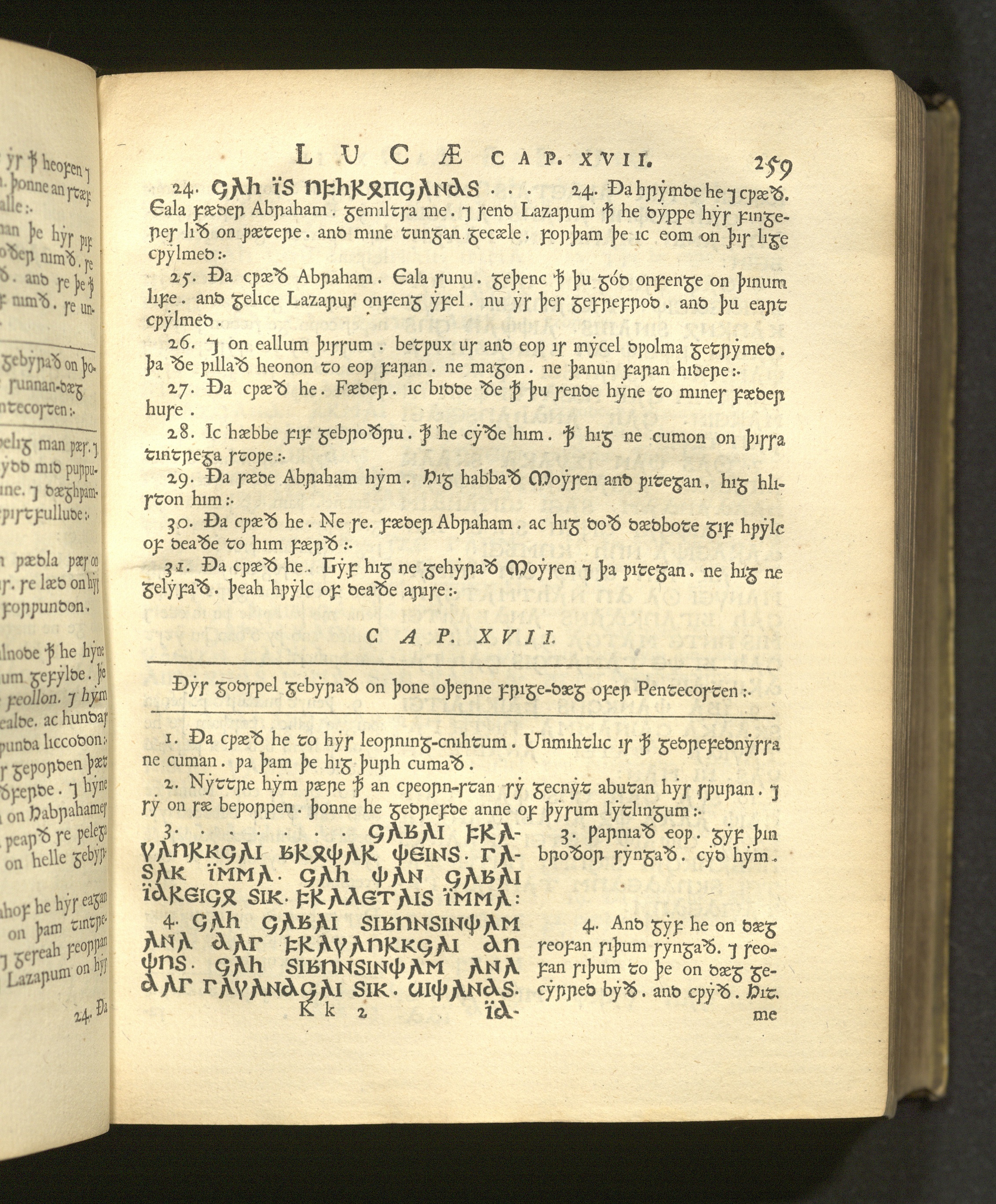 Quatuor D. N. Jesu Christi Euangeliorum Versiones perantiquæ duæ, Gothica scil. et Anglo-Saxonica / Quarum illam ex celeberrimo Codice Argenteo nunc primùm depromsit Franciscus Junius F. F. Hanc autem ex Codicibus Mss. collatis emendatiùs recudi curavit Thomas Mareschallus, Anglus ... Accessit & Glossarium Gothicum cui præmittitur Alphabetum Gothicum, Runicum, &c. operâ ejusdem Francisci Junii