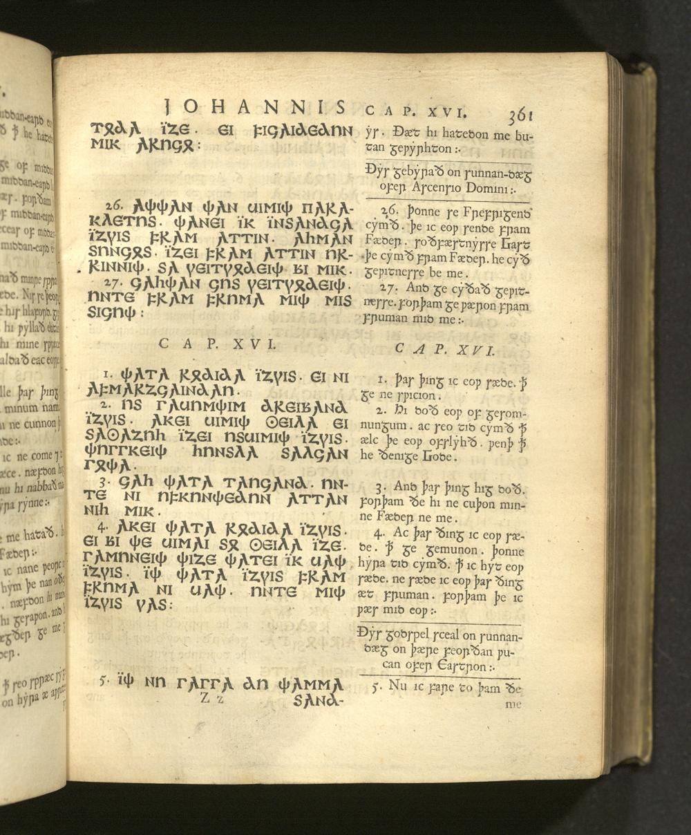 Quatuor D. N. Jesu Christi Euangeliorum Versiones perantiquæ duæ, Gothica scil. et Anglo-Saxonica / Quarum illam ex celeberrimo Codice Argenteo nunc primùm depromsit Franciscus Junius F. F. Hanc autem ex Codicibus Mss. collatis emendatiùs recudi curavit Thomas Mareschallus, Anglus ... Accessit & Glossarium Gothicum cui præmittitur Alphabetum Gothicum, Runicum, &c. operâ ejusdem Francisci Junii