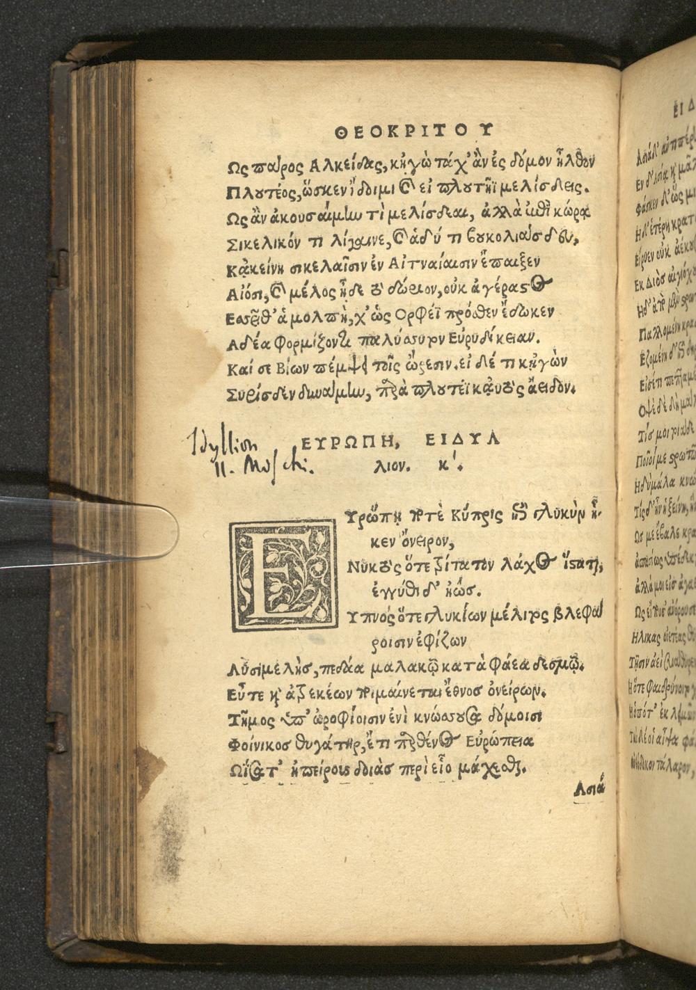 Theokritu eidyllia, tutesti mikra poēmata hex-kai-triakonta : = Theocriti eidyllia, hoc est parva poemata XXXVI