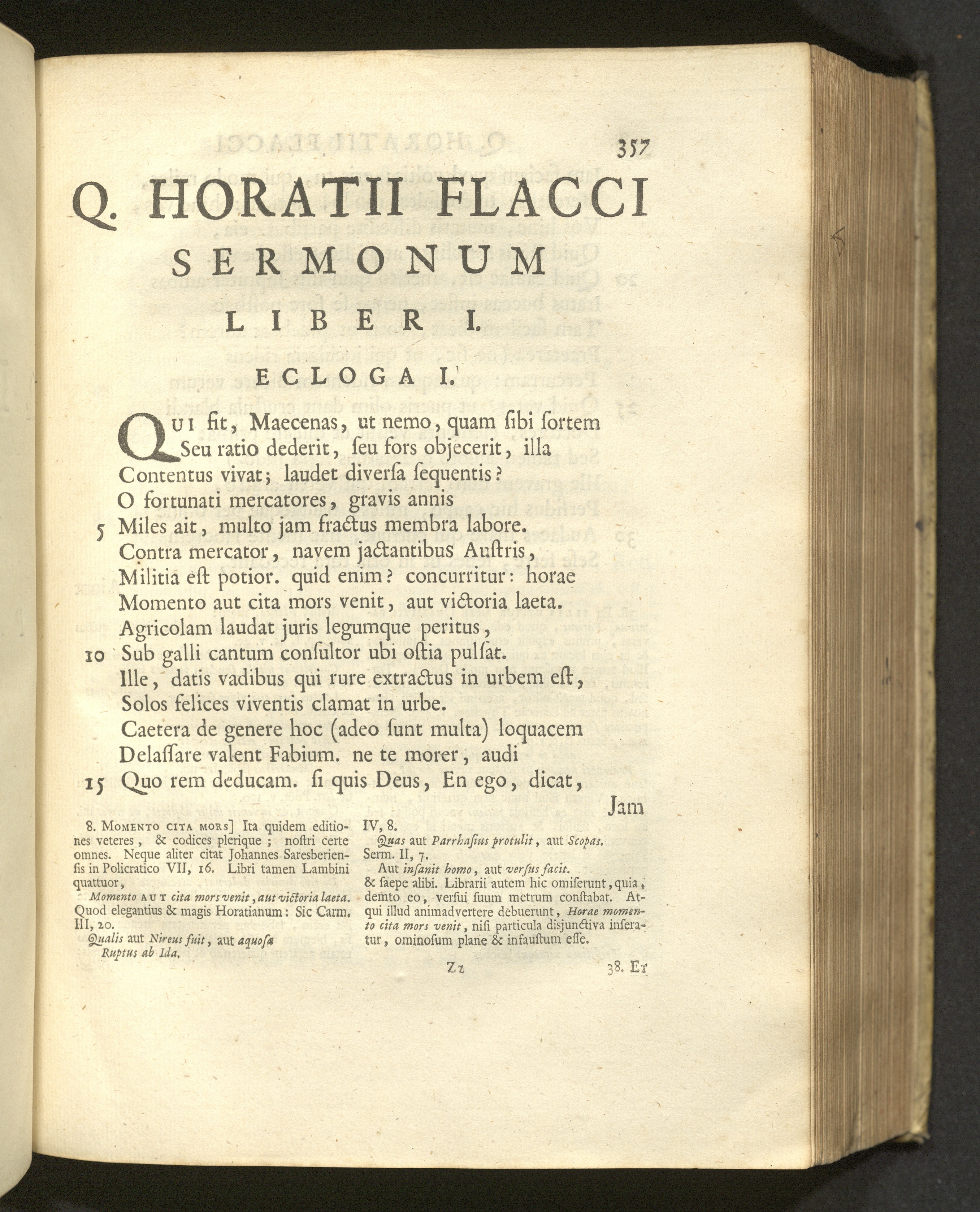 Q. Horatius Flaccus / Ex Recensione & cum Notis Atque Emendationibus Richardi Bentleii