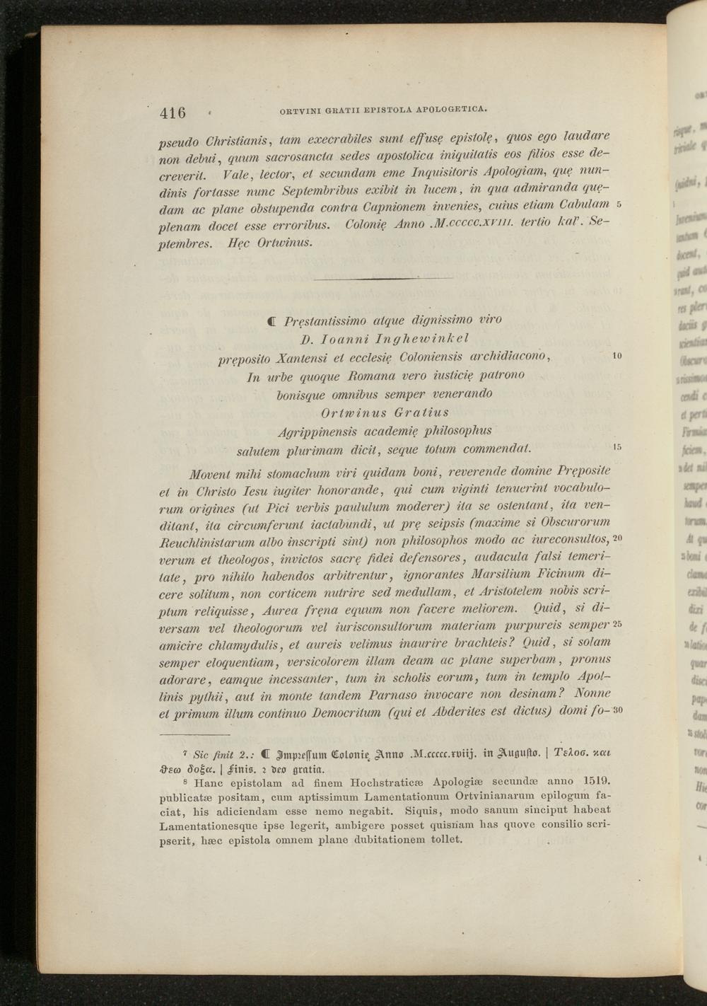 Brief von Ortwinus Gratius an Johannes Inghewinkel