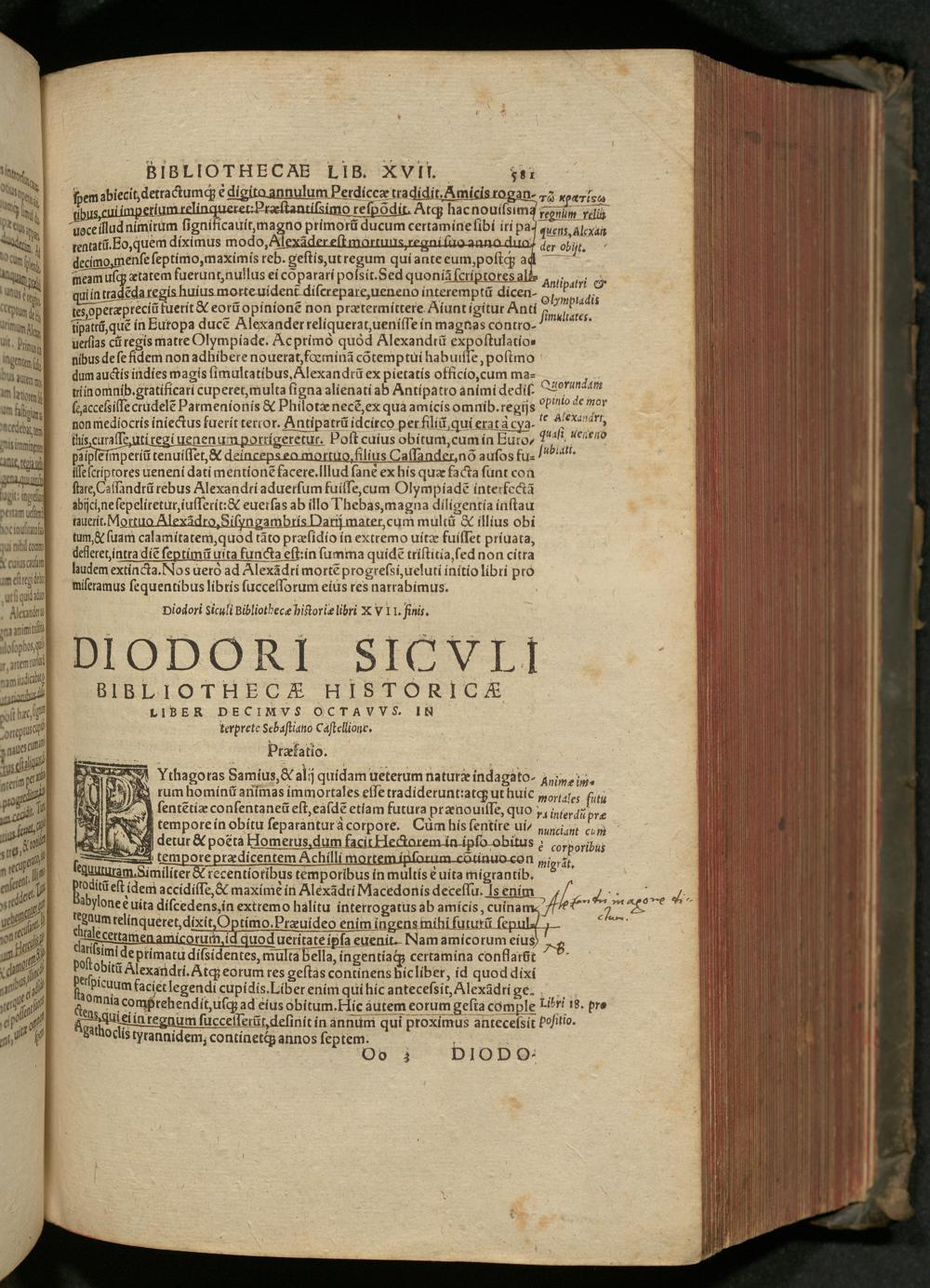 Diodori Sicvli Bibliothecæ Historicæ Libri XV : Hoc Est, quotquot Græcè extant de quadraginta ; quorum quinque nunc iterum Latinè diligenter recogniti, & chronologia illustrati eduntur