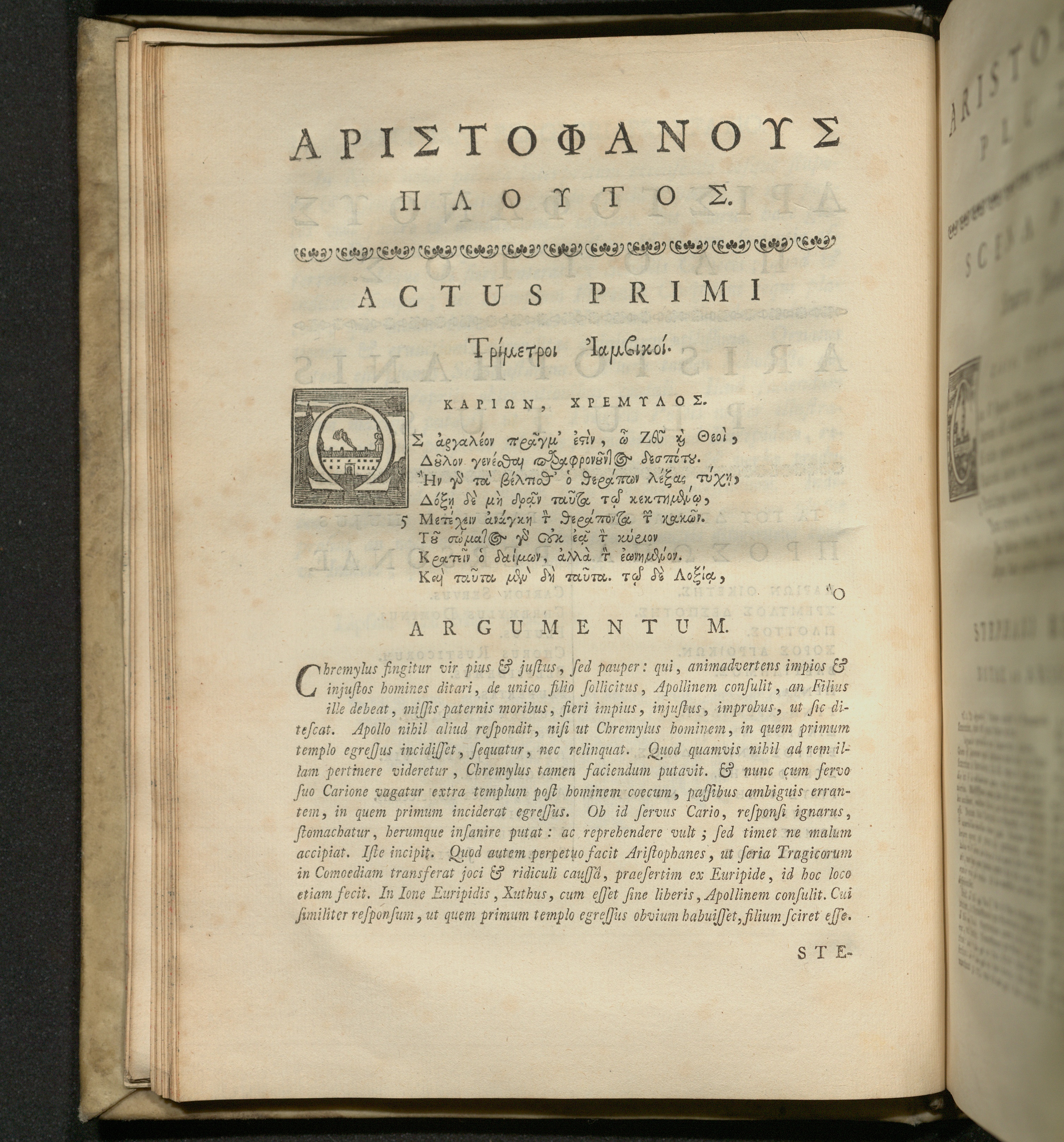 1 (1760) Aristophanis Comoediae Undecim : Graece Et Latine, Ad fidem optimorum Codicum MSS. emendatae cum nova octo Comoediarum interpretatione Latina, & notis ad singulas ineditis Stephani Bergleri nec non Caroli Andreae Dukeri ad quatuor priores. Accedunt Deperditarum Comoediarum Fragmenta, A Theod. Cantero Et Gul. Coddaeo Collecta, earumque Indices a Joh. Meursio & Joh. Alb. Fabricio digesti. Curante Petro Burmanno Secundo, qui Praefationem praefixit