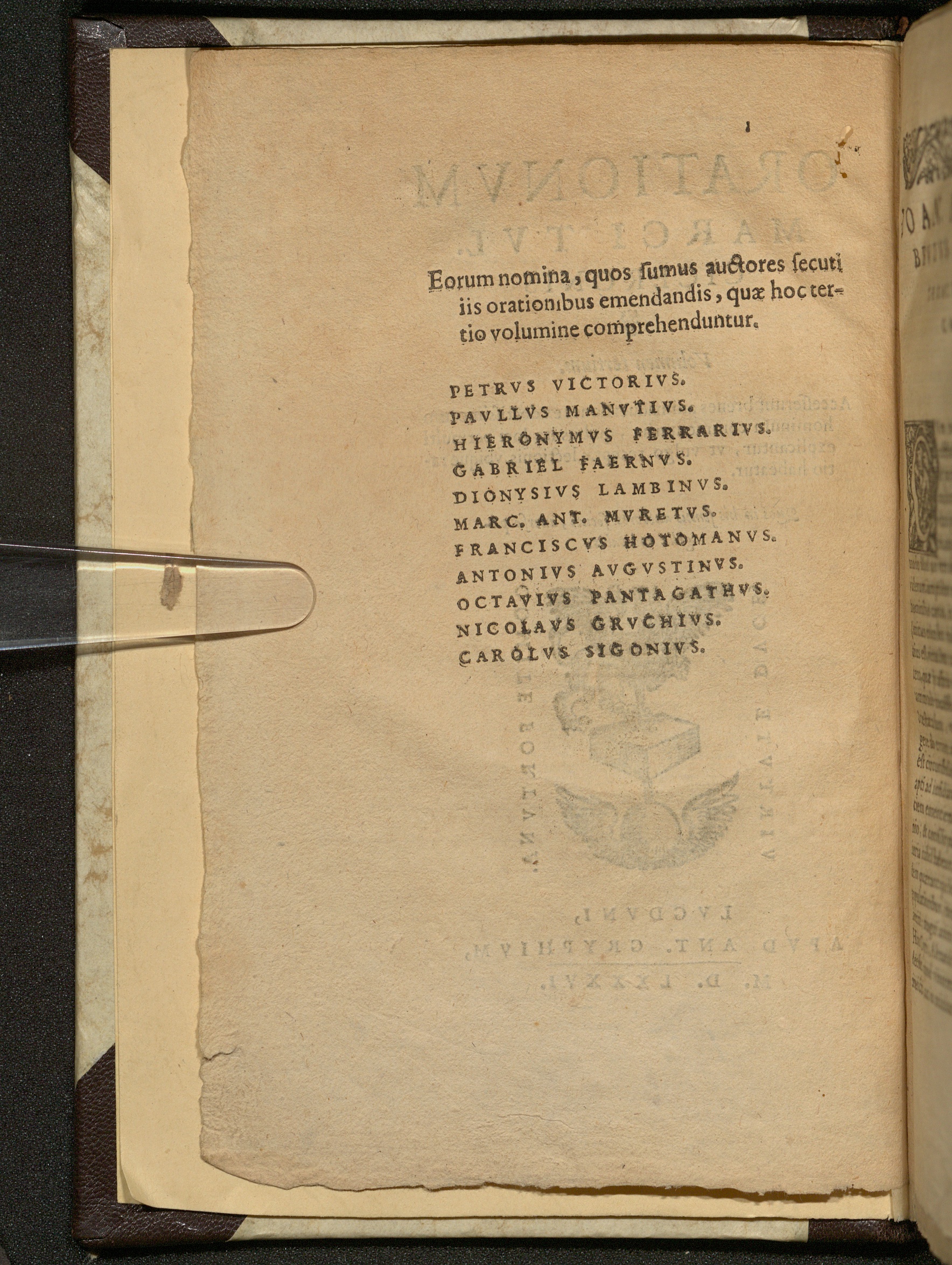 3 (1586) Orationvm Marci Tvl. Ciceronis : Accesserunt breues animaduersiones ex doctissimorum hominum commentariis, quibus ita loci permulti explicantur, vt vulgo receptæ lectionis vbique ratio habeatur