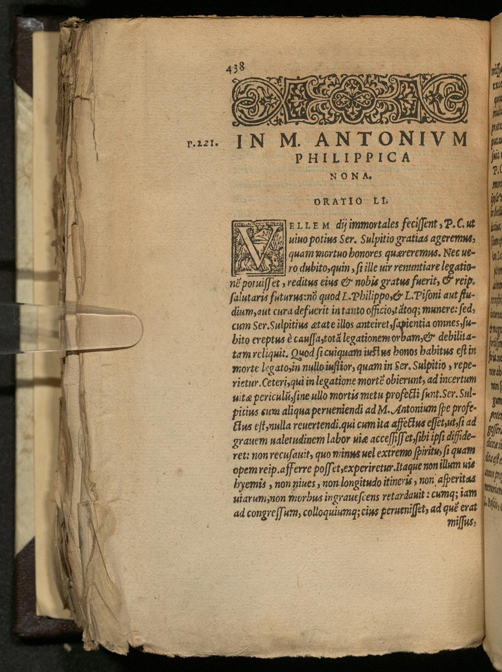 3 (1586) Orationvm Marci Tvl. Ciceronis : Accesserunt breues animaduersiones ex doctissimorum hominum commentariis, quibus ita loci permulti explicantur, vt vulgo receptæ lectionis vbique ratio habeatur