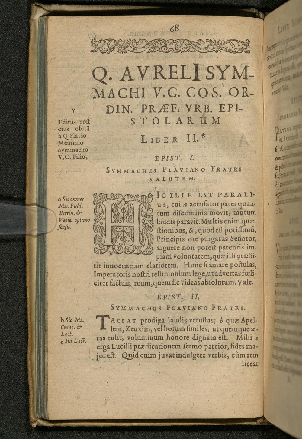 Q. Aureli[i] Symmachi V.C.P.V. Et Cos. Ord. Epistolarvm Ad Diversos Libri X. / Ex novâ recensione Joh. Philippi Parei
