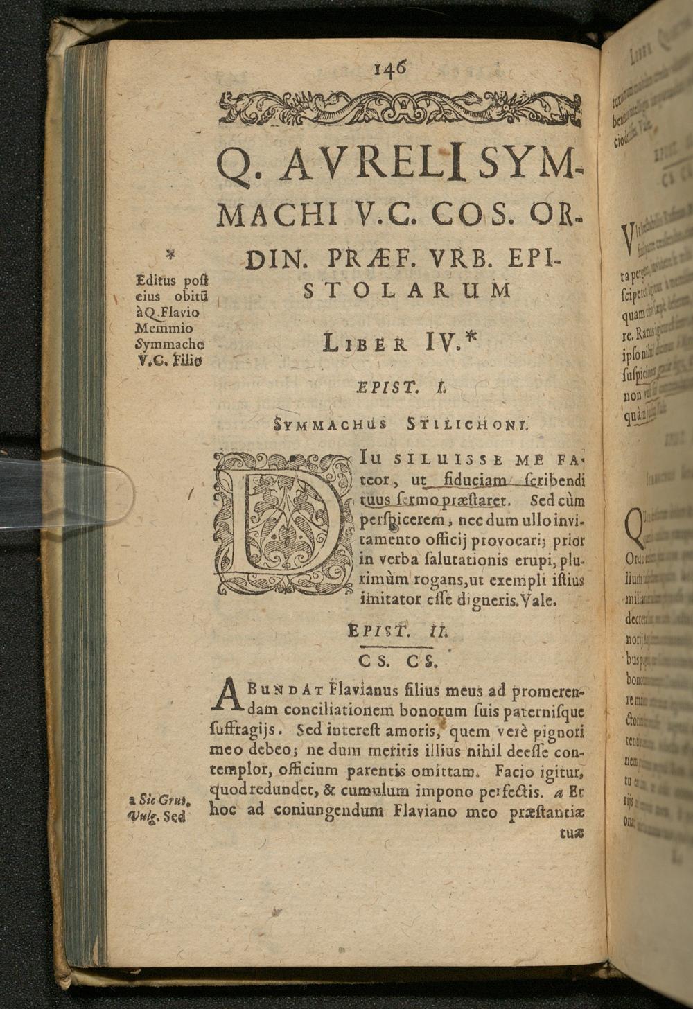 Q. Aureli[i] Symmachi V.C.P.V. Et Cos. Ord. Epistolarvm Ad Diversos Libri X. / Ex novâ recensione Joh. Philippi Parei