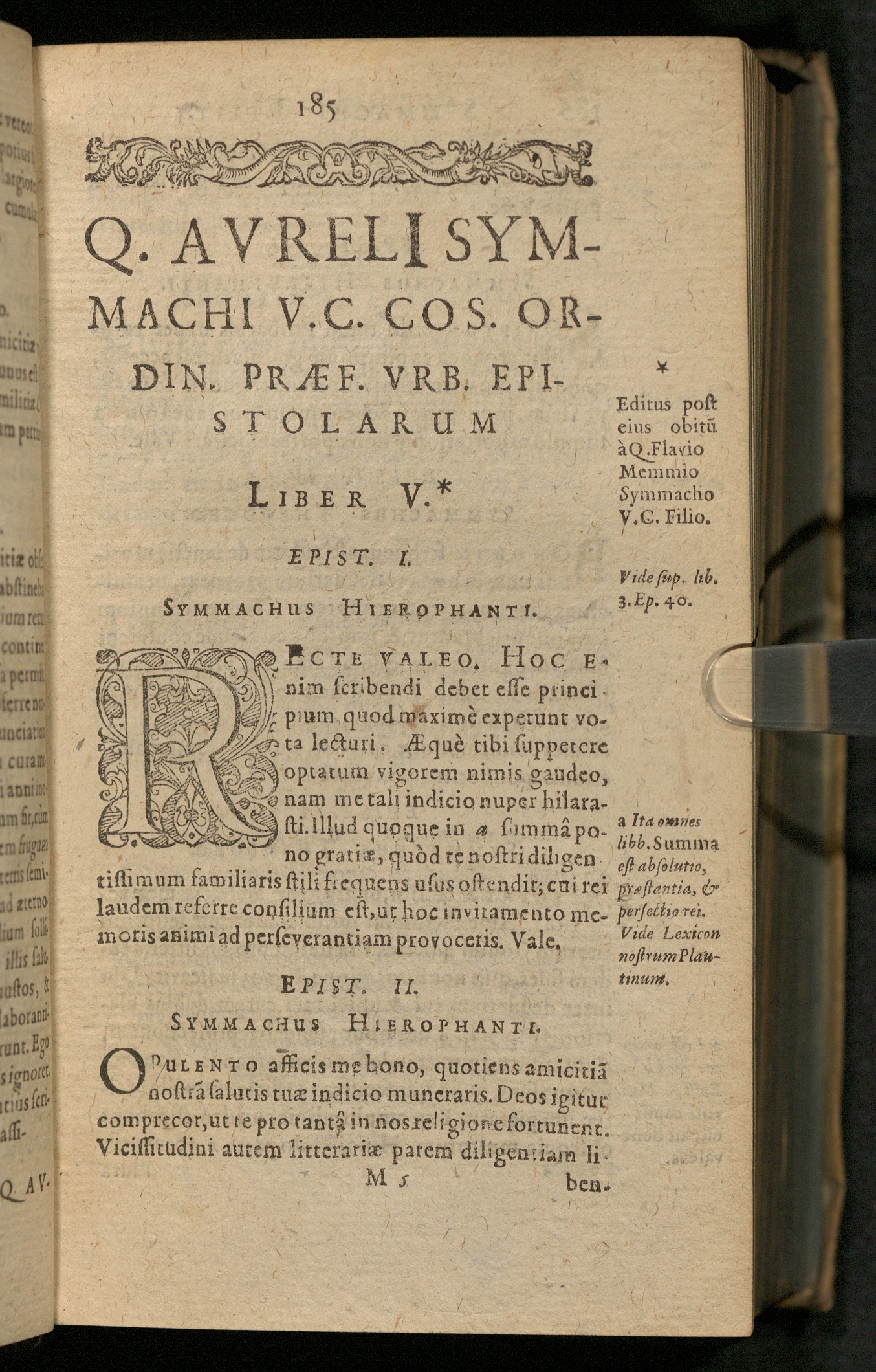 Q. Aureli[i] Symmachi V.C.P.V. Et Cos. Ord. Epistolarvm Ad Diversos Libri X. / Ex novâ recensione Joh. Philippi Parei