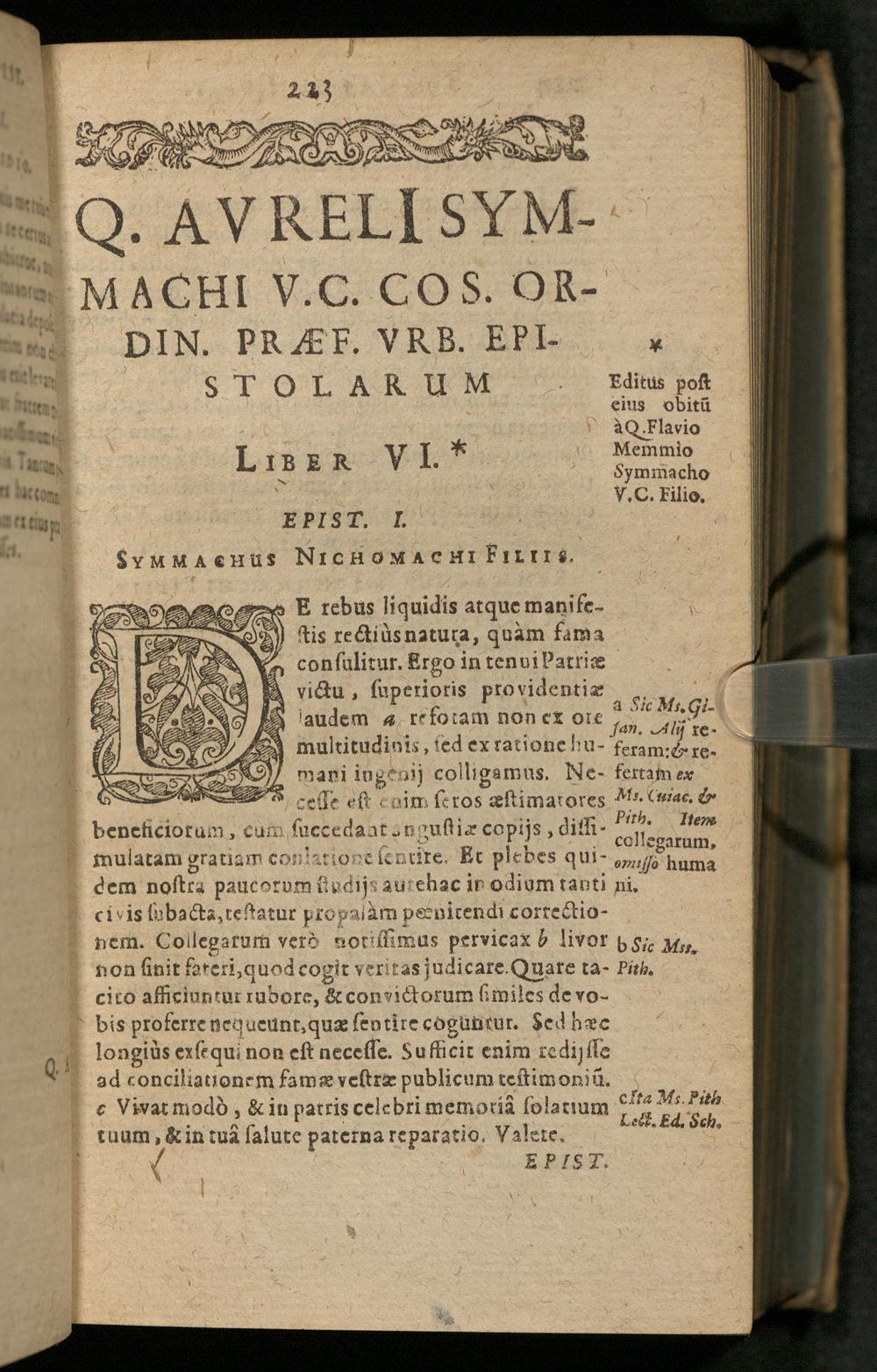 Q. Aureli[i] Symmachi V.C.P.V. Et Cos. Ord. Epistolarvm Ad Diversos Libri X. / Ex novâ recensione Joh. Philippi Parei