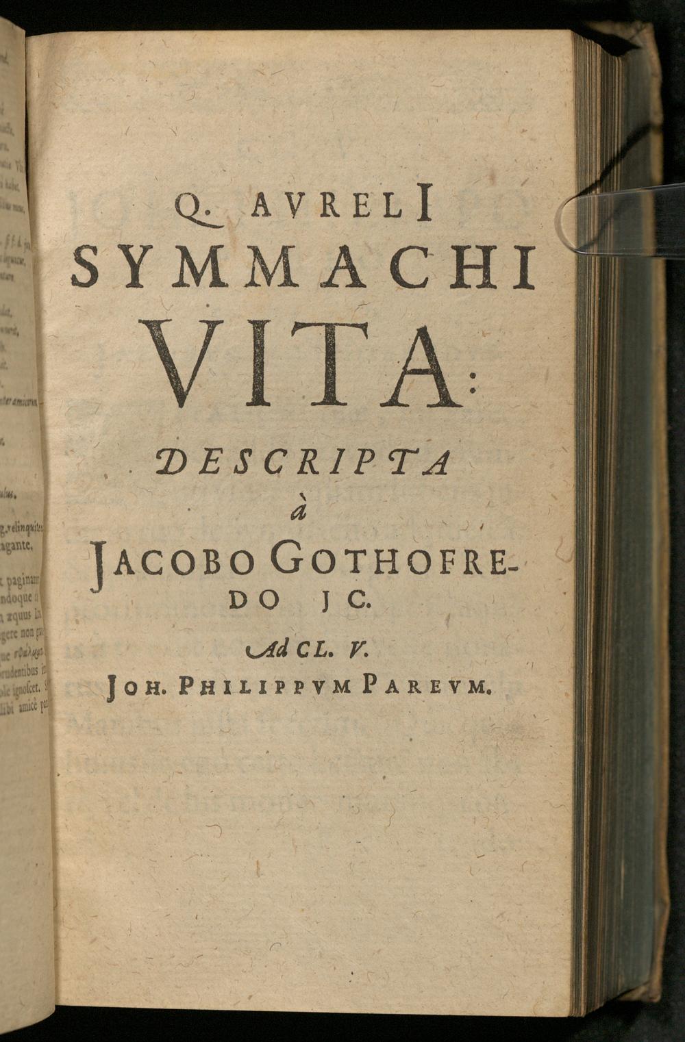 Q. Aureli[i] Symmachi V.C.P.V. Et Cos. Ord. Epistolarvm Ad Diversos Libri X. / Ex novâ recensione Joh. Philippi Parei