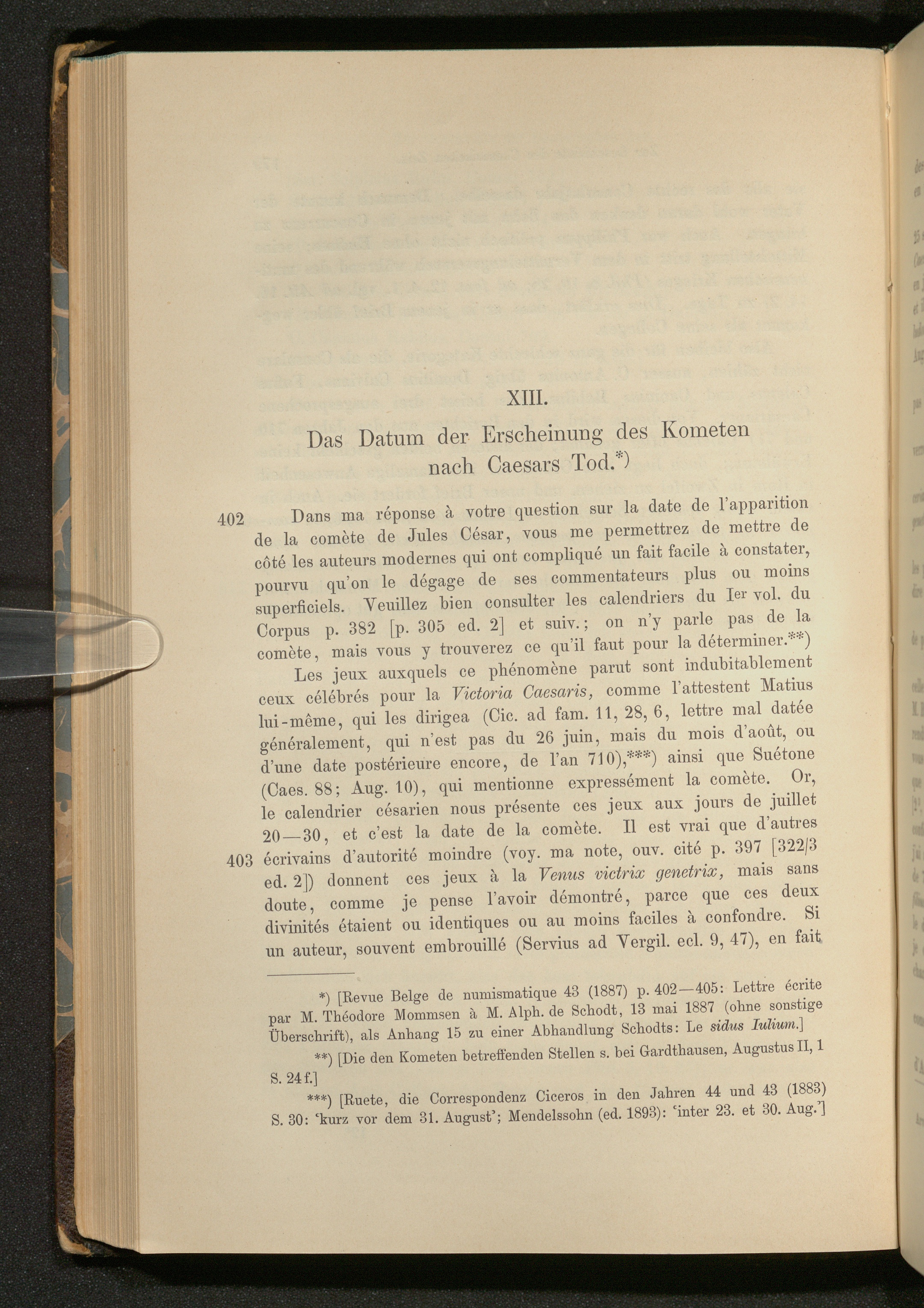XIII. Das Datum der Erscheinung des Kometen nach Caesars Tod