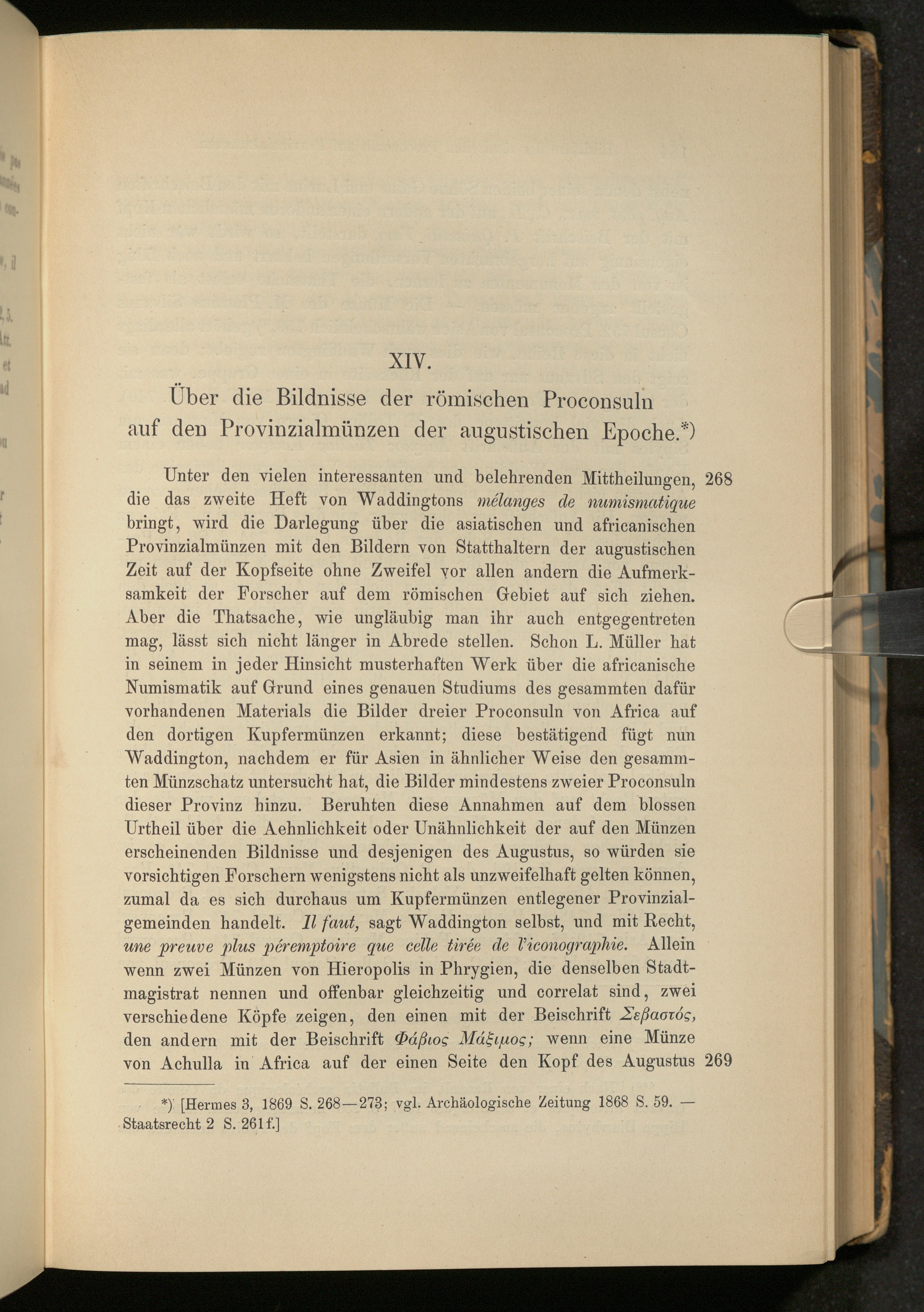 XIV. Über die Bildnisse der römischen Proconsuln auf den Provinzialmünzen der augustischen[...]
