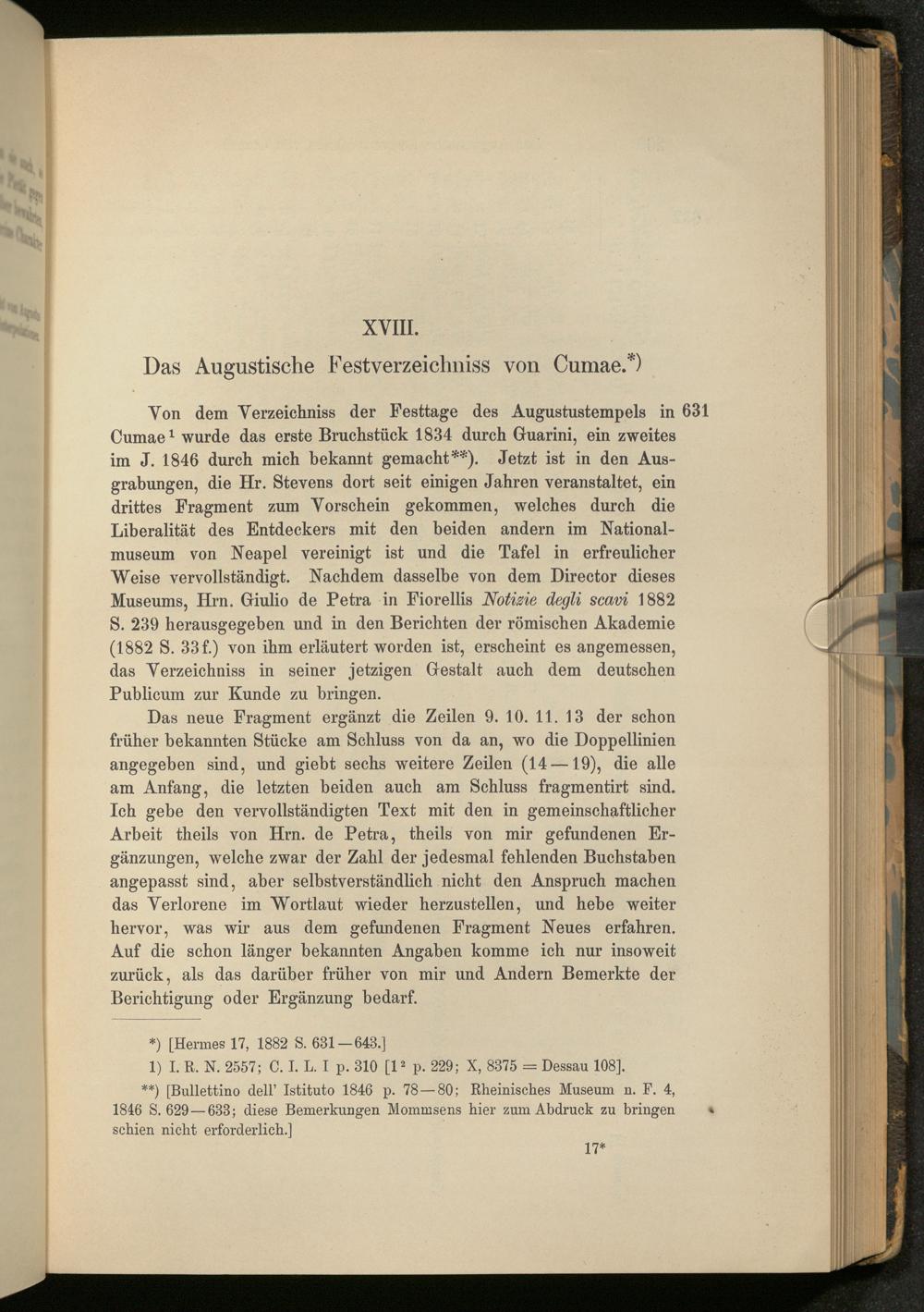 XVIII. Das Augustische Festverzeichniss von Cumae