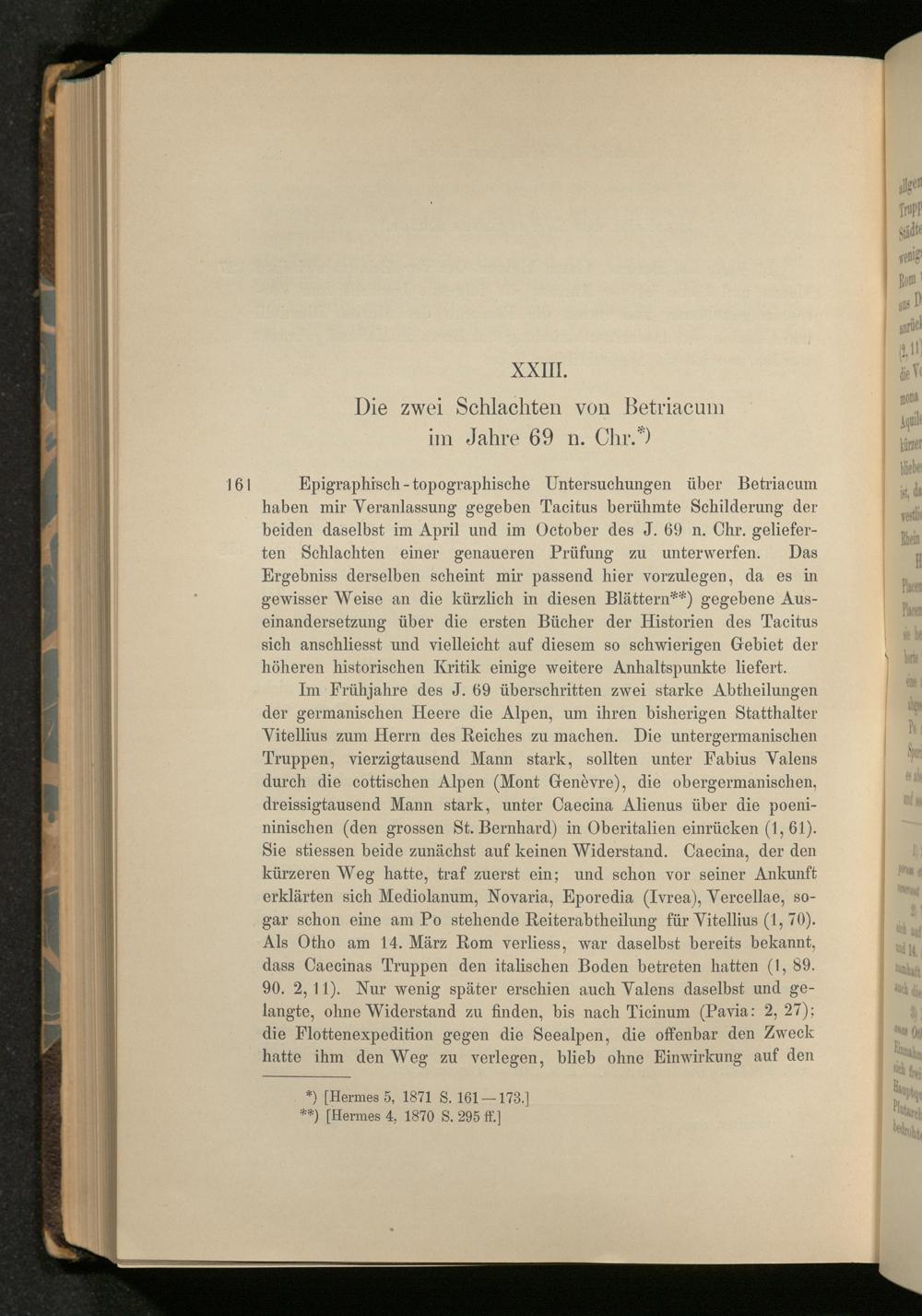 XXIII. Die zwei Schlachten von Betriacum im Jahre 69 n. Chr.