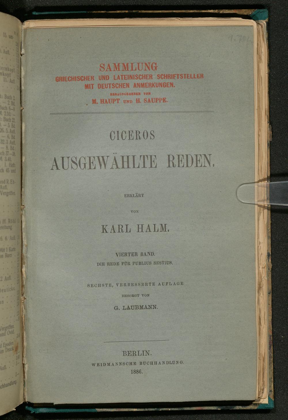 4 (1886) Ciceros Rede für Publius Sestius / erklärt von Karl Halm