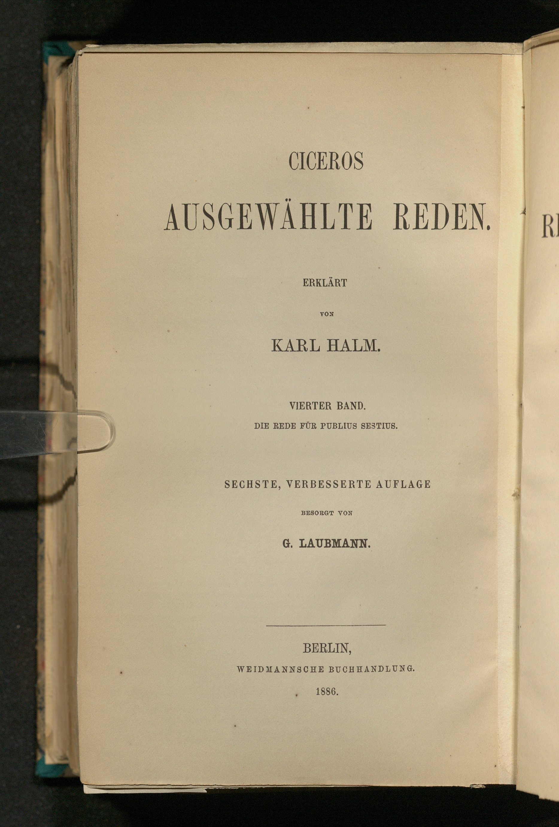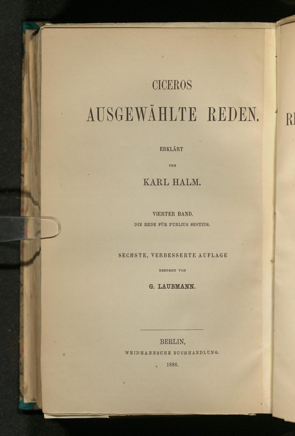 4 (1886) Ciceros Rede für Publius Sestius / erklärt von Karl Halm