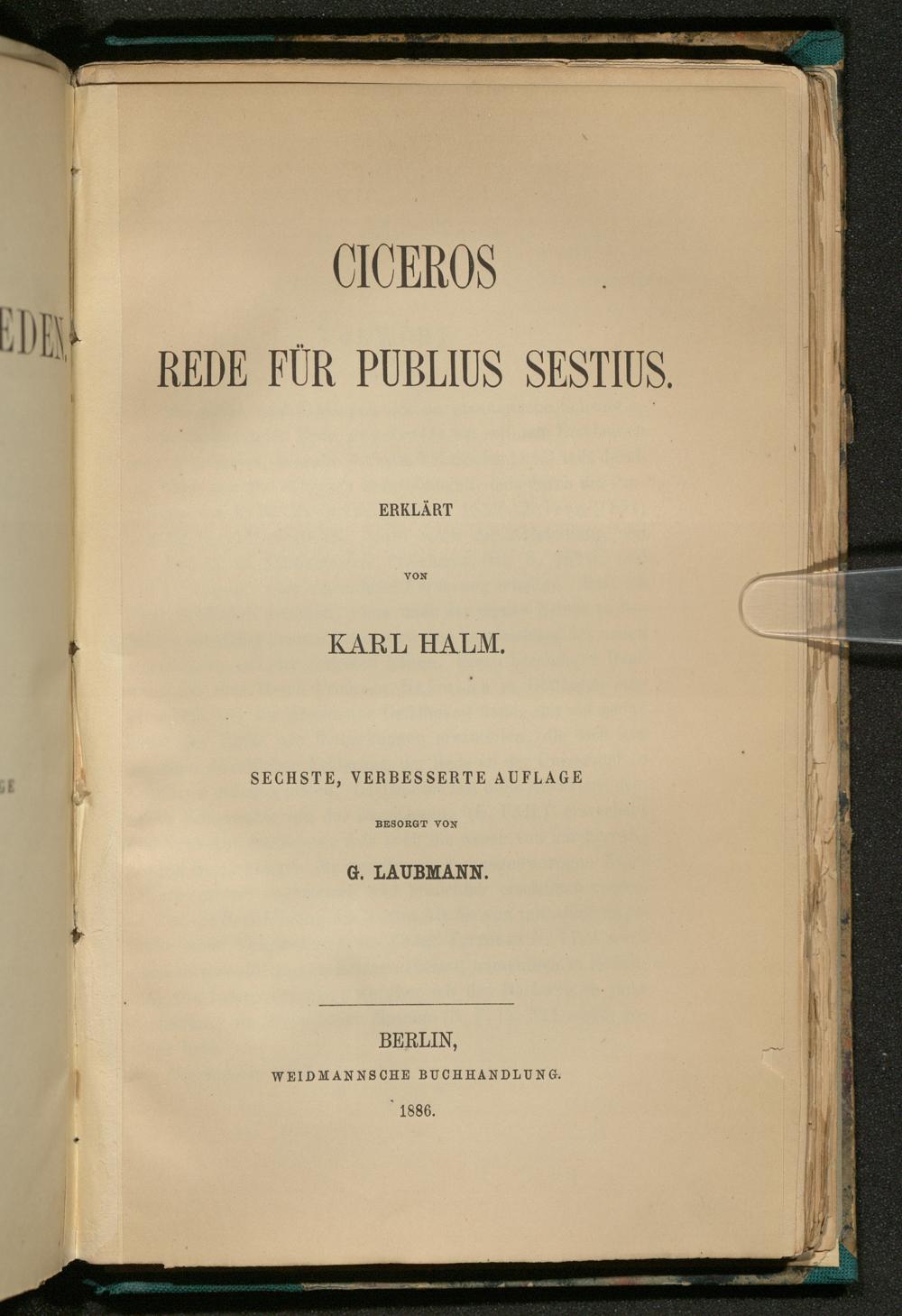4 (1886) Ciceros Rede für Publius Sestius / erklärt von Karl Halm