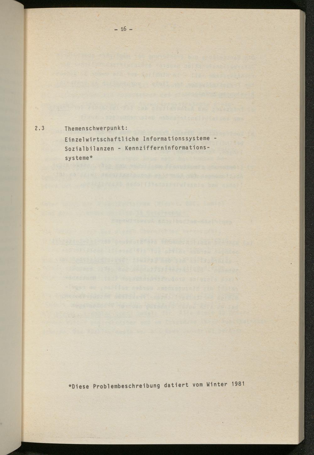 2.3 Themenschwerpunkt: Einzelwirtschaftliche Informationssysteme - Sozialbilanzen - Kennzifferninformationssysteme