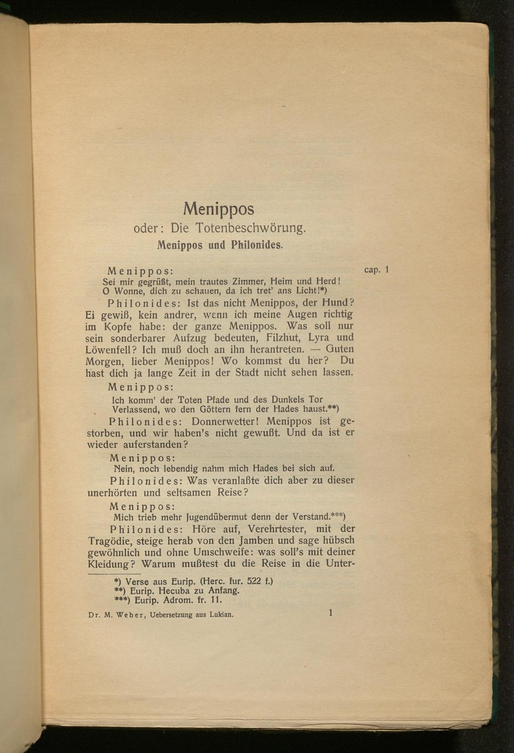 1 (1910) Lukians von Samosata sämtliche Werke / aus dem Griech. übers. von M. Weber