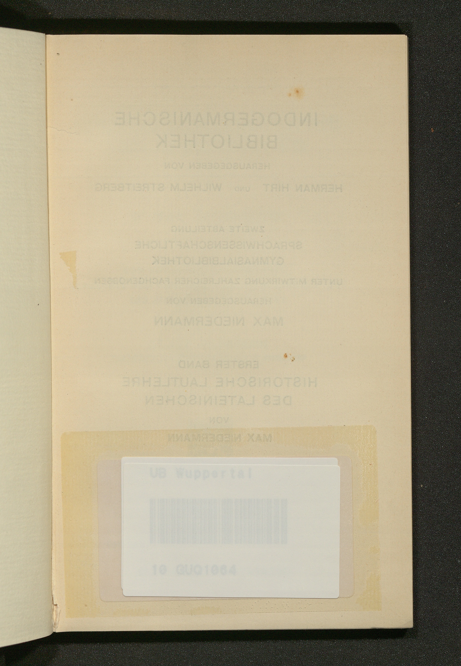 Historische Lautlehre des Lateinischen / von Max Niedermann. Vom Verf. durchges., verm. und verb. dt. Bearb. des franz. Orig. von Ed. Hermann