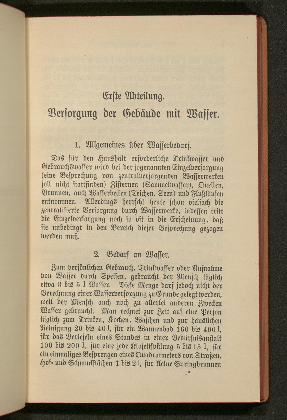 Erste Abteilung. Versorgung der Gebäude mit Wasser