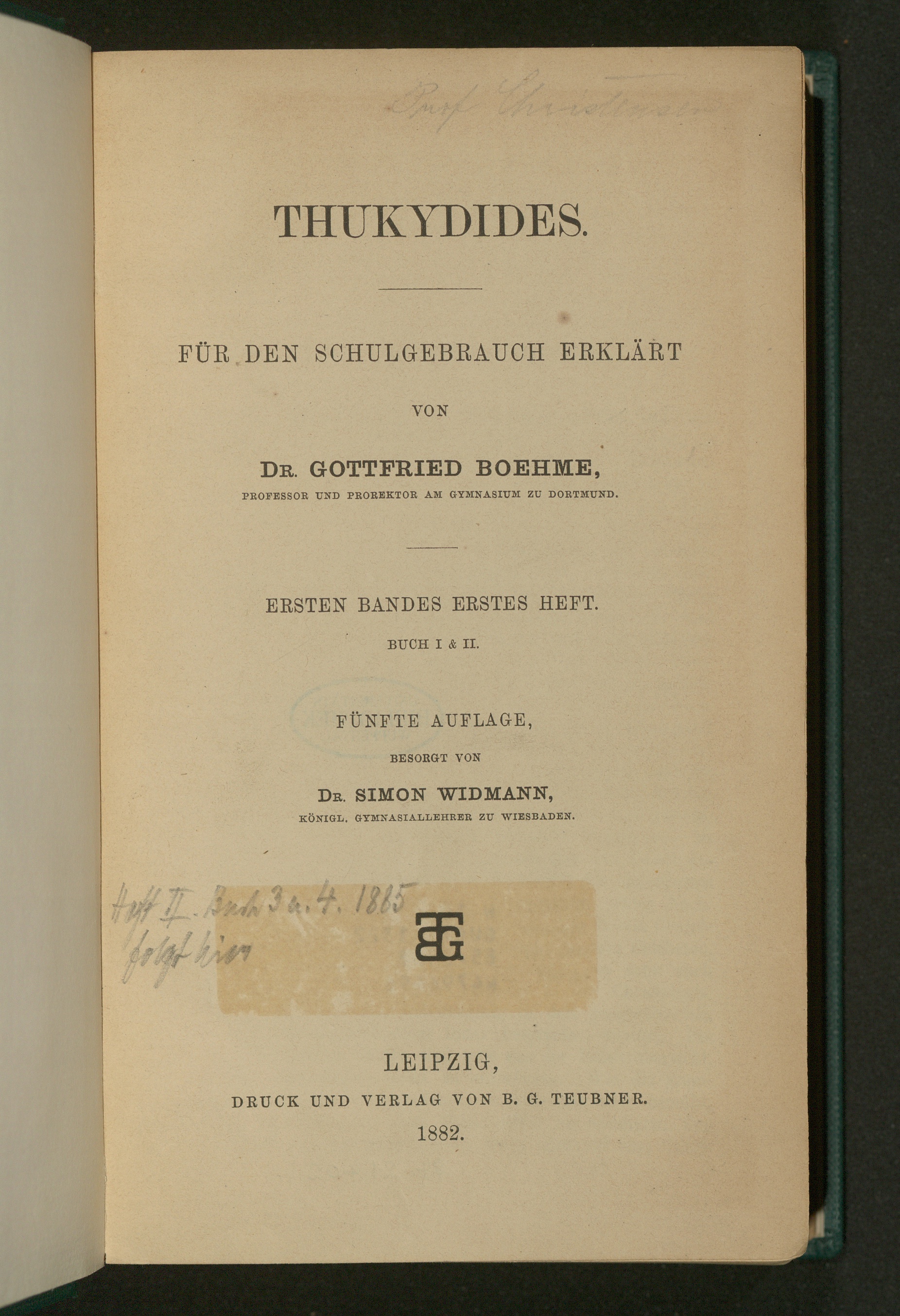1,1 (1882) Buch I & II / von Gottfried Boehme Prorector am Gymnasium zu Dortmund